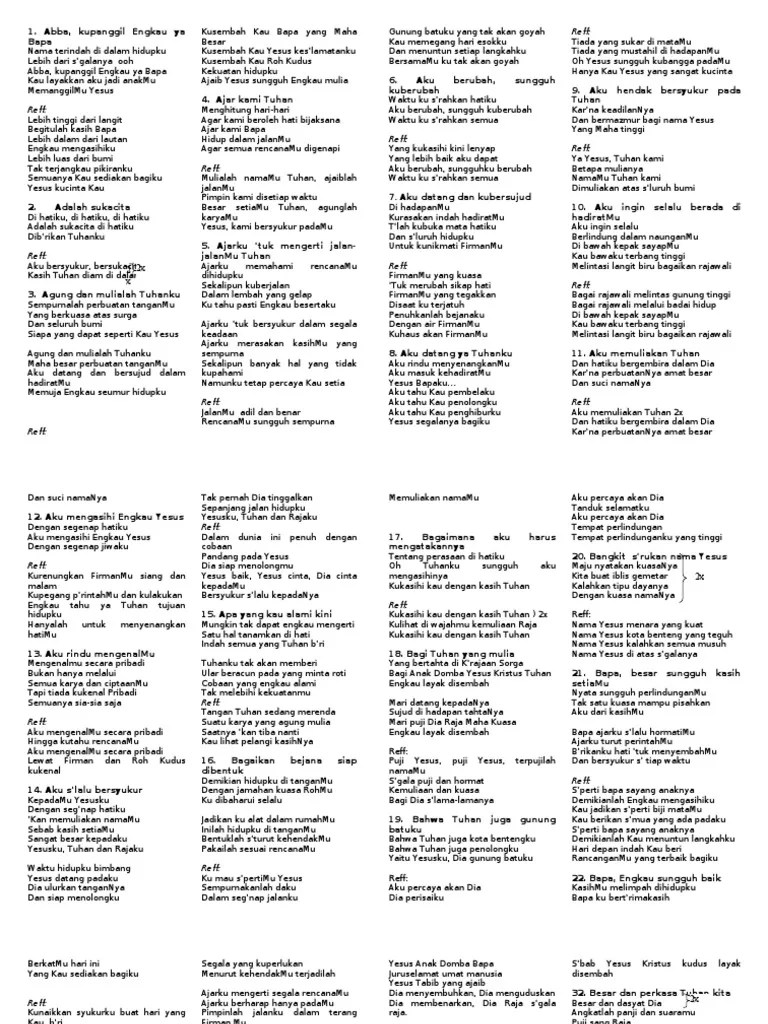 Penolongku hanyalah dirimu (kau penolongku) penghiburku hanya engkau bapaku (kau bapaku) selalu menyertai hidupku.